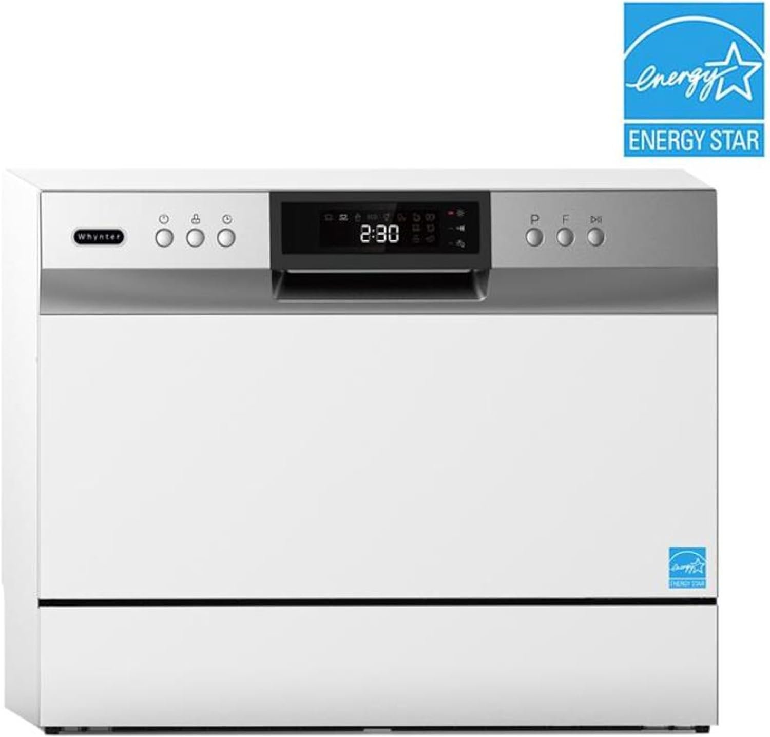 Save time and water with the Whynter Countertop Portable Dishwasher. This countertop portable dishwasher can accommodate up to 6 place settings and is designed to fit on most countertops and under cabinetry. The Whynter CDW-6831WES features a durable stainless steel interior for maximum sanitation and heat retention. A detergent and rinse air dispenser, 6 wash cycles for versatile use, and timer-start function allow optimal versatility and convenience. Best of all, it connects quickly to a kitchen faucet without the need for direct plumbing or permanent hook-up. With its compact size and easy maneuverability, the Whynter CDW-6831WES countertop dishwasher is a great choice for your RV, cabin, vacation home or any space constrained location. ? Six (6) standard place setting capacity ? Six (6) standard wash cycles (Heavy, Normal, Baby Care, ECO, Glass, Speed) ? Stainless steel interior and spray arm for extended durability ? Dish rack and silverware basket ? User friendly controls ? 1-24 hour delay start lets you wash dishes at your own convenience ? Automatic detergent and rinse agent dispenser ? Quick connect adapter for most kitchen faucets included for quick and simple connection ? Drain and inlet hose included ? AC (120V/60Hz) ? Total Amps: 5.7A ? Heater: 5.0A ? Water pressure: 0.041.0MPa ? Maximum water temperature: 140°F ? Phase: Single.