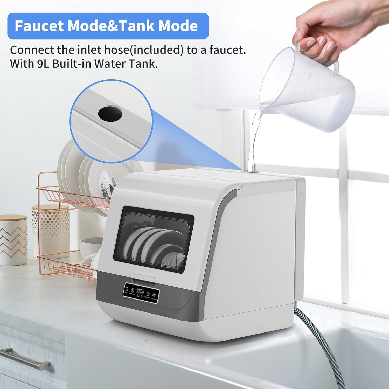Customers find the countertop dishwasher effective, with one mentioning it gets dishes spotless. Moreover, the device is easy to install and use. However, several customers report issues with leakage in the water tank.